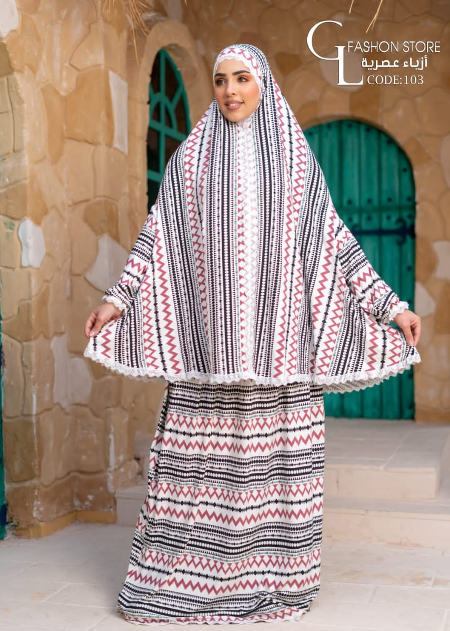 إسدال عملي بخامة قطن بيور ناعمة، تصميم قطعتين (جيبة + خمار) للراحة في الصلاة والبيت